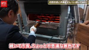 アツアツの工房で、市長と手焼きせんべい焼いてみた!
