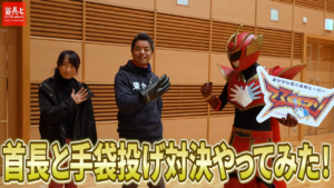 そして名物イベント・手袋投げに公式ルールで挑戦します。専用の巨大手袋を使って、市長とMCが真剣勝負!勝負のゆくえは…!?